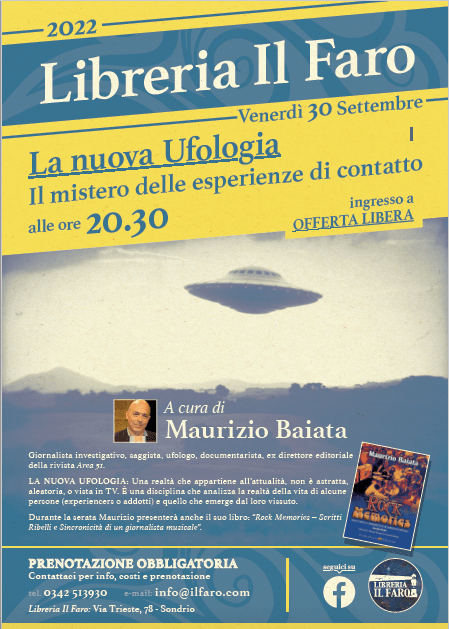 Giornalista investigativo e ricercatore del mistero, Maurizio Baiata è cresciuto con la musica rock nel sangue. Altrove, assoluto e alieni sono per lui lo specchio esteriore di uno stesso mondo, al quale a volte abbiamo accesso, se il nostro sé vuole compiere il percorso legato al soprannaturale, a tutte le creature nel cosmo, alle nostre vite passate, presenti e future.