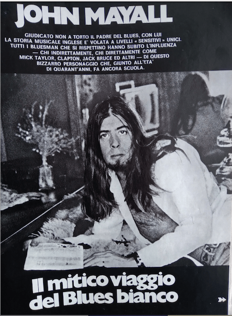 Il grande bluesman britannico è morto oggi nella sua abitazione in California. Per conoscere meglio l’immensità della sua figura artistica, ritengo utile pubblicare un mio articolo uscito sul numero 40 del settimanale Ciao 2001 l’8 Ottobre 1972. Il Ciao dedicò a Mayall la cover story, e quella splendida copertina ora lo può degnamente ricordare. Questo il sottotitolo dell’articolo: Con lui la storia musicale inglese è volata a livelli “sensitivi” unici. Tutti i bluesman che si rispettino hanno subito l’influenza – chi indirettamente, chi direttamente come Mick Taylor, Eric Clapton, Jack Bruce – di questo personaggio che, giunto all’età di quarant’anni, fa ancora scuola.