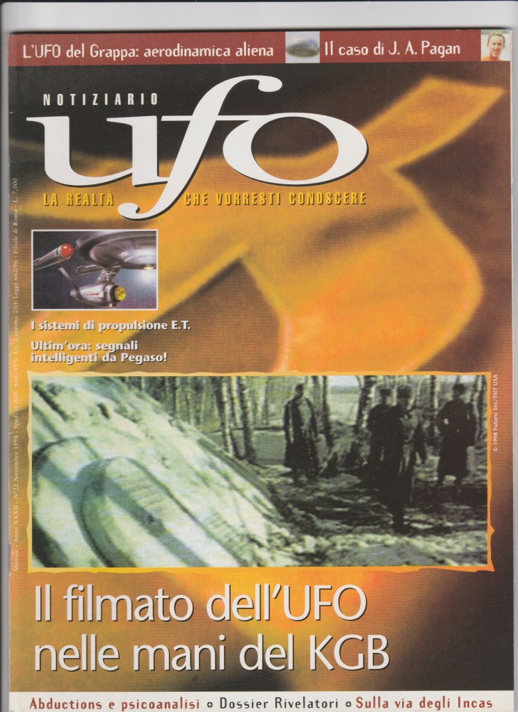 La cover del n. 2 del Gennaio 1999 di Notiziario UFO dedicata ai filmati aerei del KGB.