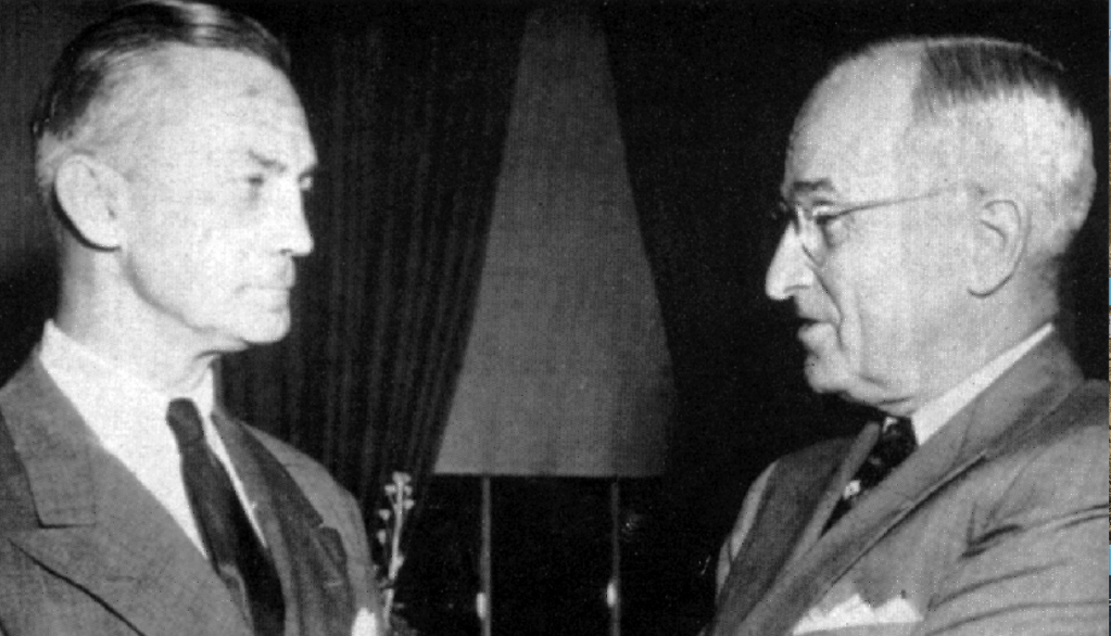A destra, il Presidente Harry Truman, con l’Ammiraglio James Forrestal, che fece parte del MJ-12.