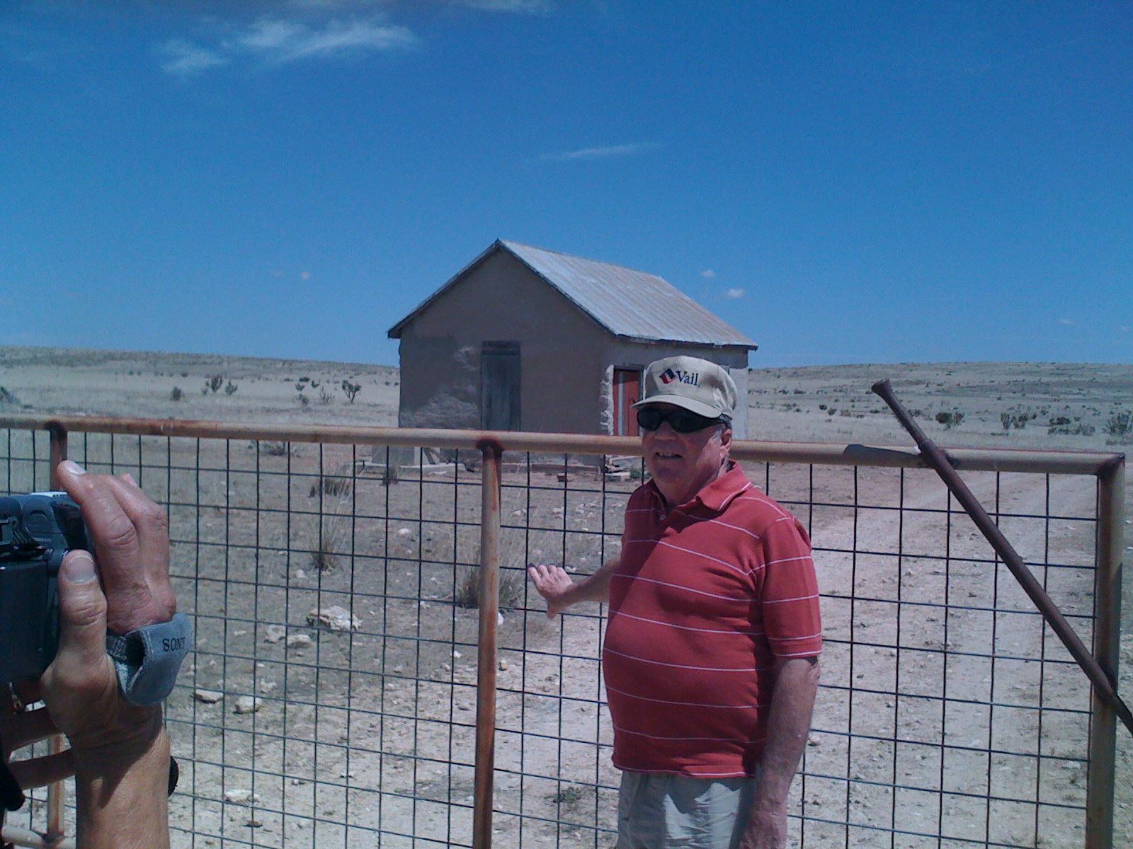If this was the right place where the first impact occurred, where Maj. Marcel, Sr. and Cavitt were guided by Mack Brazel, one has to wonder how they made it to the site. Col. Jesse Marcel Jr. distinctively recalls his father came home that night with his Buick sedan loaded with debris, even in the passenger seats. A Buick sedan would have found the terrain no easy task – pasture or no pasture. I’ve asked Chuck Zukowsky’s opinion and according to him, “one story is Cavitt, Marcel and Brazel were on horse back from the Hines house. They brought debris back to the house and stored it in a shed (which is no longer). From the Hines house they loaded their cars and drove on the county/dirt road”. This version makes sense to me, now, after I’ve visited these places. Or did they perhaps load all of the fragments on CIC Capt. Cavitt’s Jeep and then into Maj. Marcel, Sr.’s Buick before he arrived at his home to show the fragments to his wife and 12-year-old son later that night? I calculated an area of approximately 600 yards in length and 300 yards in width, half-surrounded by a shallow cliff of approximately 180-200 feet. Based on testimony from witnesses, this was the first peak where the UFO impacted, but the gouge does not exist anymore. The military were apparently very meticulous in their objective to recover every single piece or fragment of debris, and they may have subsequently filled and leveled the terrain to perfection. ‘They vacuumed everything,” Col. Marcel, Jr. said as he walked on his shaky legs, which were protected and reinforced by braces. But he was tireless and we spent more than 2 hours together, just strolling, talking and wondering. Our eyes, the whole time, were attracted by the sloping landscapes of the Capitan Mountains and the clear, magnificently blue sky. The morning was not too hot for early July. I recorded conversations between myself, Debbie, Chuck and Col. Marcel, Jr. for future reference. There were many questions I needed to ask, and all of the answers were fixed in a distant past. They drew upon the memories of an event that took place 60 years ago.