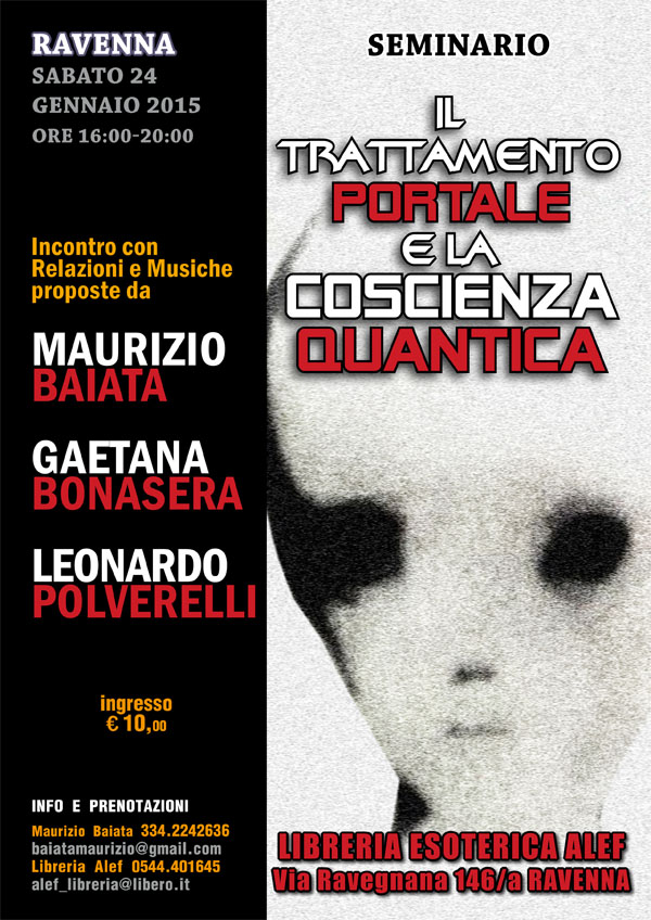 Ne parleremo a Ravenna sabato 24 Gennaio, nell’incontro IL TRATTAMENTO PORTALE E LA COSCIENZA QUANTICA il cui programma prevede presentazioni a braccio e in power point, della psicoterapeuta Gaetana Bonasera e del sottoscritto, seguite dalle musiche di Leonardo Polverelli dedicate a Wolf e al suo libro. Il cantante e compositore di Bellaria eseguirà nove brani tratti da “ZALATOR”, Volume 10 della serie “Musica dall’Invisibile”. Tutte nuove tracce a tema spirituale/ufologico, in particolare “KOLTA”, “THE END OF THE DAYS” e “GOLDEN CRISES”, scritte direttamente sotto l’influsso del “TRATTAMENTO PORTALE” di Wolf. Presenti nell’Album, Alice Polverelli alla voce e il polistrumentista olandese Alex Staal. Con questo decimo volume si chiude il ciclo della “Musica dall’Invisibile” di Leonardo Polverelli.