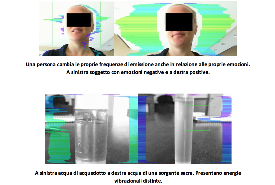 Il sistema utilizzato è nato in campo militare ed è parte integrante del progetto governativo degli Stati Uniti d’America denominato F.A.S.T. (Future Attribute Screening Technology). L’Analizzatore d’Immagine che viene usato per monitorare le vibrazioni emesse, in stati normali o modificati di coscienza, dal cosiddetto Campo Energetico Umano (Human Energetic Field – HEF) si fonda sul principio che tutto vibra, in modo visivamente impercettibile, ma strumentalmente misurabile. Il software che connette i dati rilevati dall’analizzatore allo schermo del PC permette di mostrare l’immagine ottica del soggetto con l’aggiunta del suo spettro di emissione sotto forma di falsi colori. (Ad ogni tonalità di colore corrisponde un preciso valore della frequenza emessa.) L’analizzatore mette in rilievo le vibrazioni generate dal corpo umano che normalmente variano in continuazione nei vari punti del corpo stesso sia in ampiezza sia in frequenza, anche in modo rapido. Inoltre permette di vedere il grafico corrispondente allo stato di partenza. Il software segnala, attraverso la variazione dei falsi colori dell’immagine, un passaggio ad uno stato modificato di coscienza, arrivando certe volte fino alla totale scomparsa dell’immagine stessa o al suo viraggio verso un’unica tonalità di colore. Lo spettro di vibrazione può essere misurato sia sull’essere umano, sia su animali e vegetali che su qualsiasi altro composto materiale, in quanto tutta la materia è interessata da una emissione energetico-vibrazionale dovuta essenzialmente alla rotazione e vibrazione delle molecole e degli atomi costituenti. Tutti i parametri vengono analizzati e memorizzati in tempo reale dal software. Alla fine della sperimentazione si può disporre di “report” relativi allo spettro delle vibrazioni.