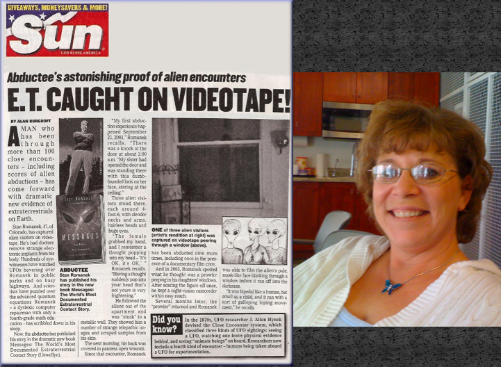 Un articolo di giornale che titola “Alieno ripreso in video” e Lisa Romanek (foto: Maurizio Baiata).